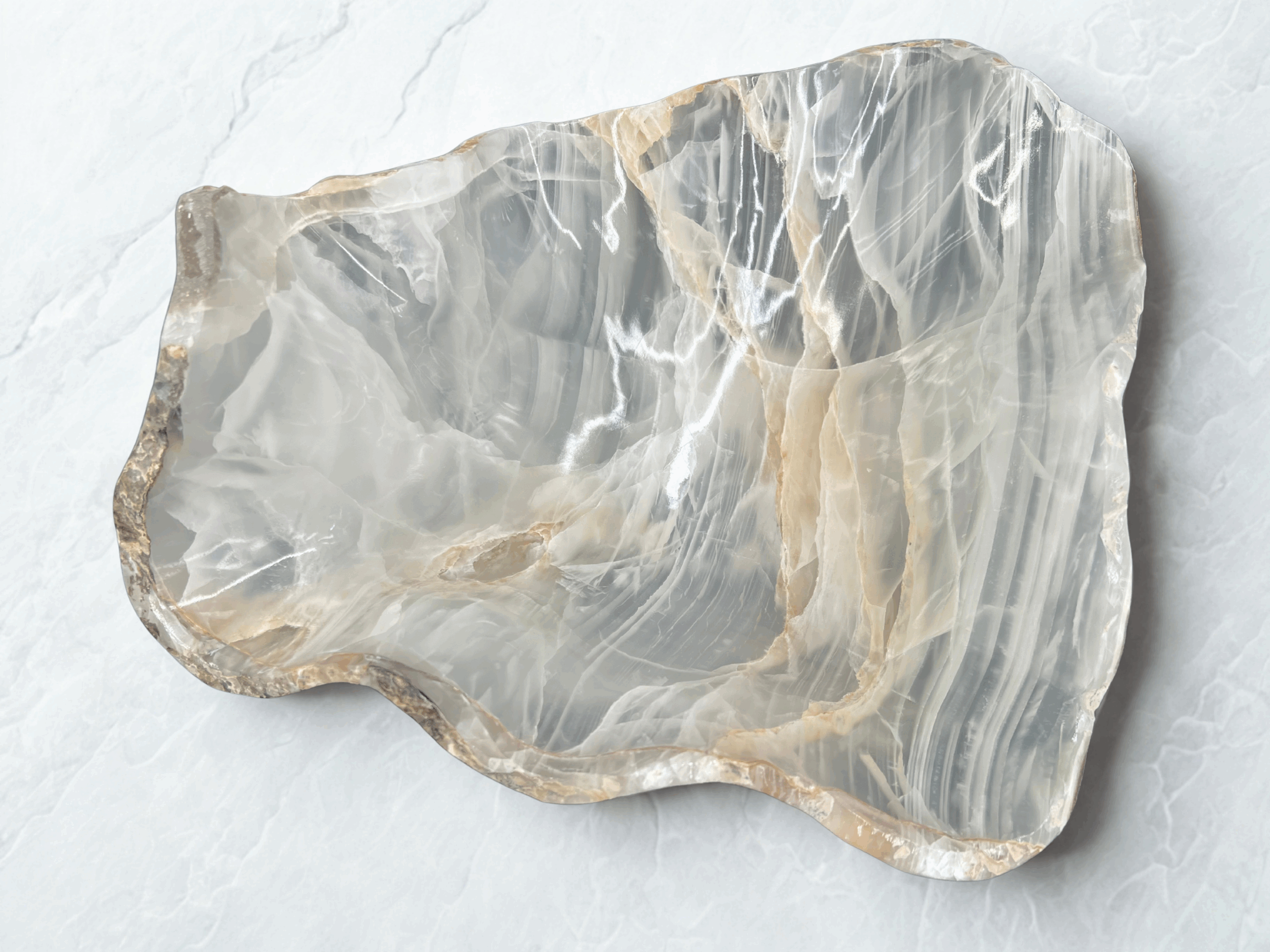 Carved from the earth’s timeless artistry, these free-form onyx bowls embody nature’s beauty
