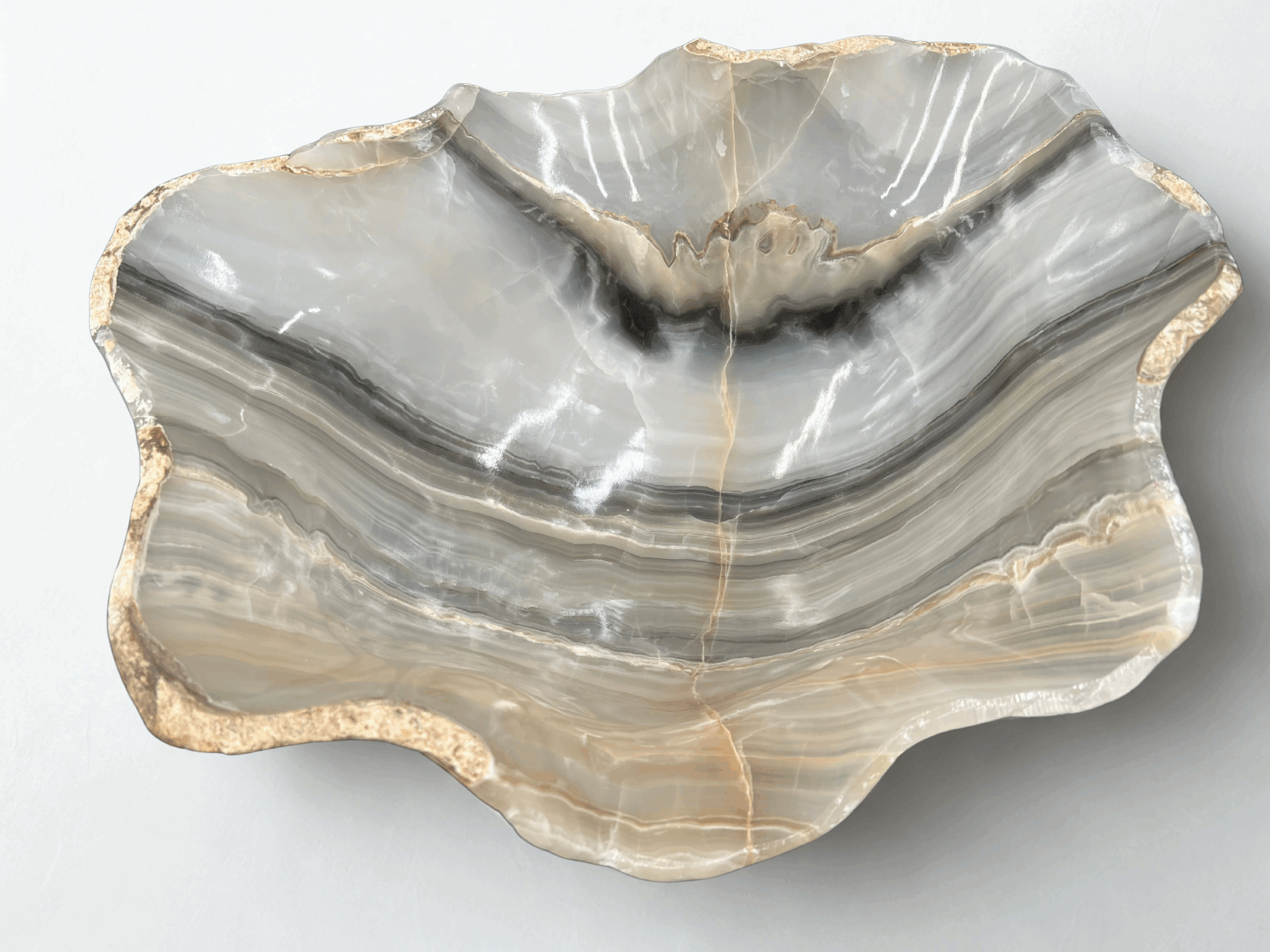 Carved from the earth’s timeless artistry, these free-form onyx bowls embody nature’s beauty