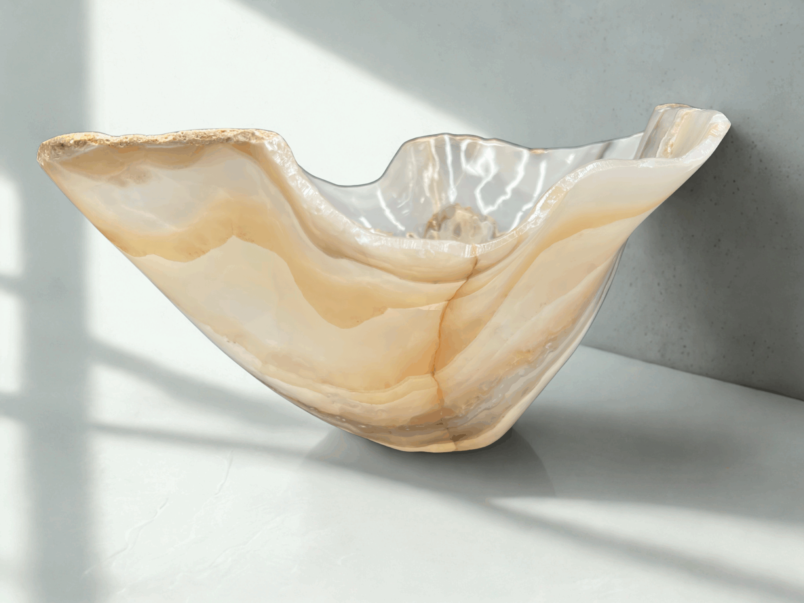 transform raw stone into flowing, organic forms. No two bowls are ever alike—the natural veins,